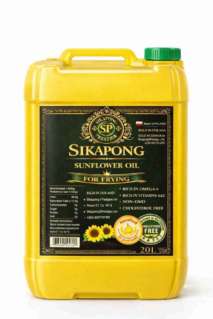 Discover the gold standard of frying. Imported directly from the heart of Ghana, our premium sunflower oil combines Polish production quality with West African prestige. Refined for health, crafted for taste.